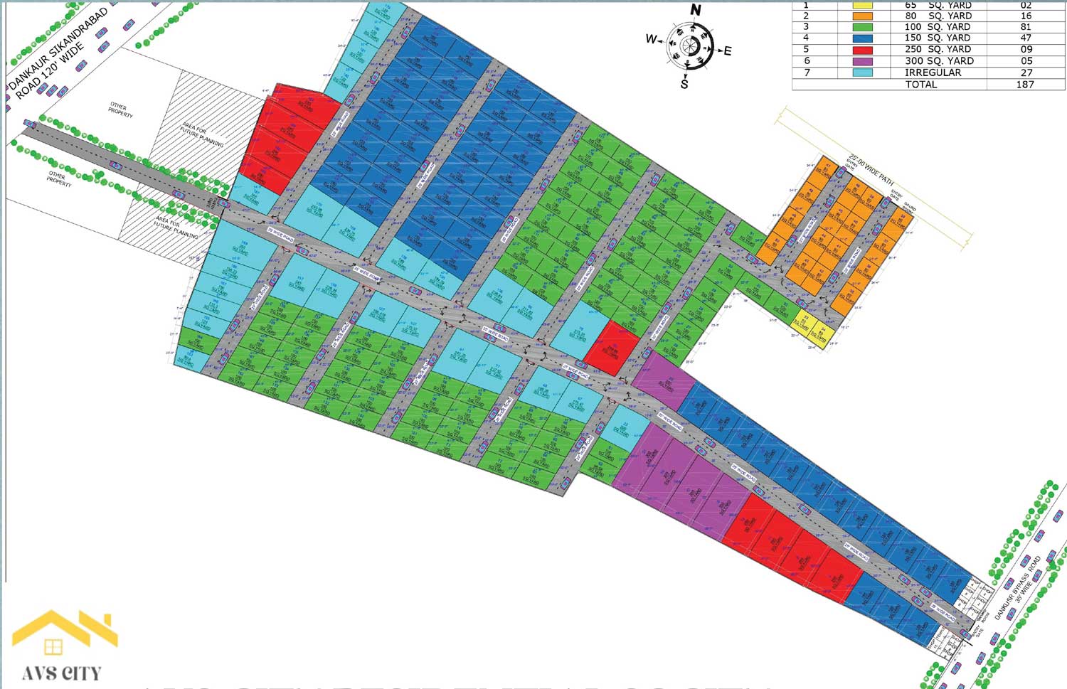 - Plot Sizes : 100 – 200 Sq. Yds